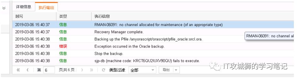 根据报错提示是显示分配维护通道失败,观察备份任务,是可以备份数据成功的,只是最后执行失败回滚。于是尝试到操作系统层面上直接执行备份ORACLE自己的任务backup database plus archivelog ,发现执行可以成功,再执行crosscheck命令发现在可正常执行维护任务。
