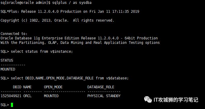ALTER DATABASE MOUNT STANDBYDATABASE;
