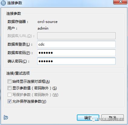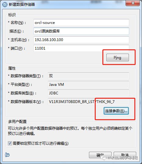 输入源端数据库数信息,点击PING后,再点击连接参数