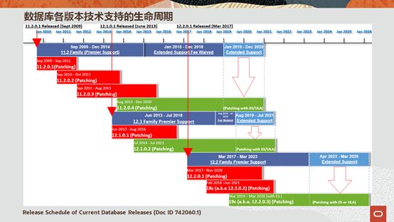 除了安全稳定性,从产品支持时间角度看,19c是一个“长期支持”的版本。“长期支持”是指Oracle数据库19c有4年的标准支持(到2023年3月底)和至少3年的扩展支持(到2026年3月底)。这个扩展的支持窗口对于我们的许多要做版本升级策略规划的客户来说是至关重要的。11.2.0.4 在2019.1.1 进入Paid Extended Support阶段,新产生 Bug 或者新的Merge Patch 需要付费;其实11.2.0.4在2014.12.31 就结束了Premier Support阶段,进入Waved Extended Support阶段(2014.12.31-2018.12.31),该阶段Oracle免除扩展服务阶段的费用。