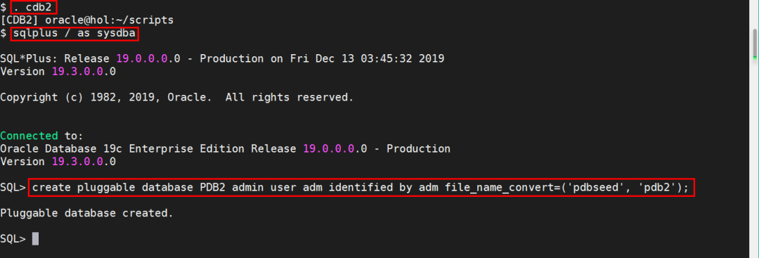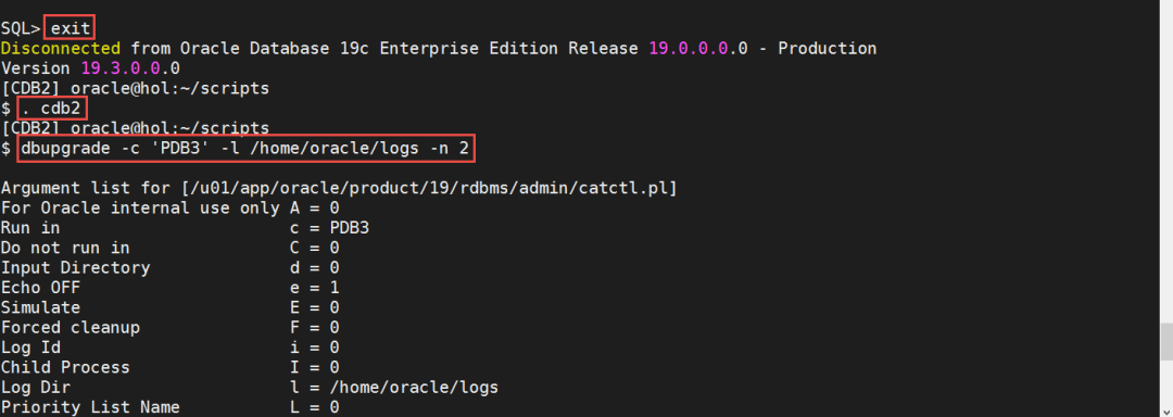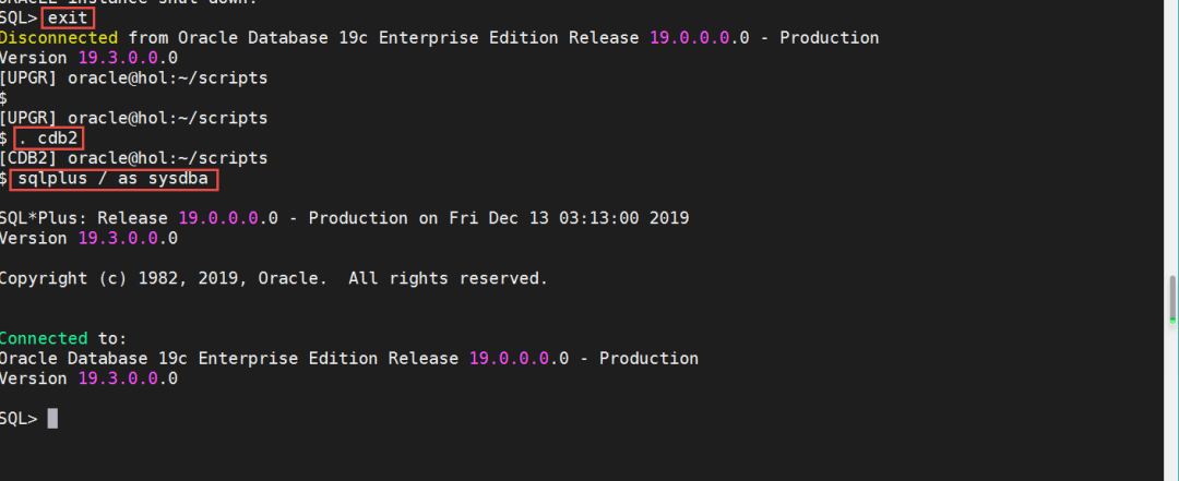 我们在之前的实验当中,将upgr这个数据库从11.2.0.4升级到19.3,但这个数据库目前还是non-CDB数据库。在本实验当中,想将这个升级后的non-CDB插入到19.3的CDB当中。这里需要注意的是,如果是non-CDB以PDB的形式插入CDB,首先要将这个non-CDB升级到与目标CDB相同的版本。我们在当前的环境中,有一个叫做CDB2的19.3的容器数据库,我们稍后就将upgr这个19.3的non-CDB以PDB的形式插入CDB2.