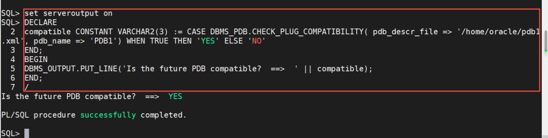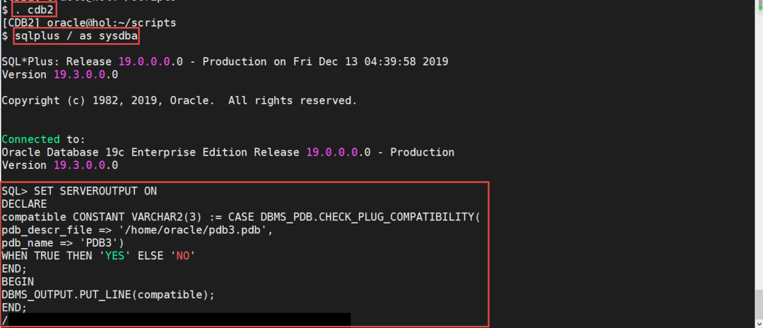 第四步:来到目标容器数据库CDB2,检查兼容性,看是否满足插入条件