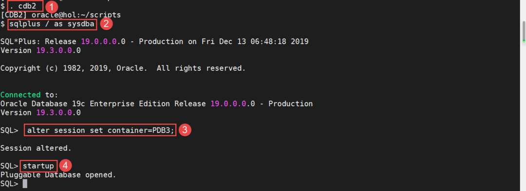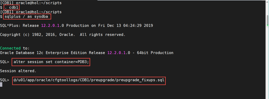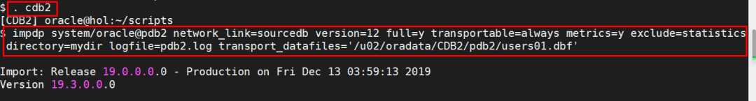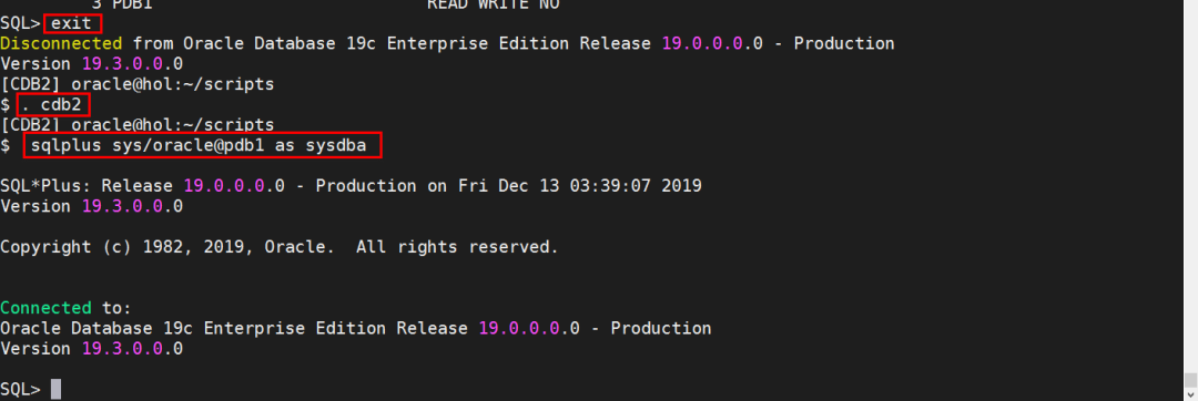我们在12.2.0.1 CDB1当中有一个pdb叫做pdb3,将这个数据库插入到CDB2(19.3)当中实现升级。