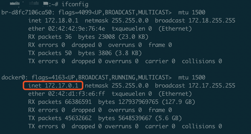 由于 Nginx 是通过 docker 方式部署的,而 gogs 服务是直接部署在服务器上。在配置 gogs 的反向代理时,需要找到 docker 宿主机的 IP。