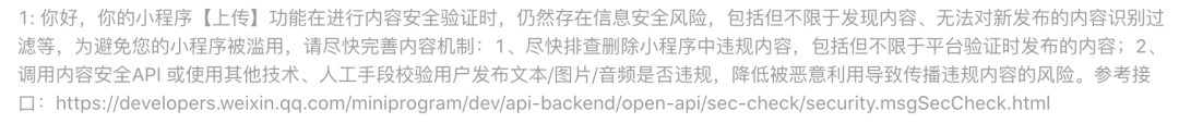 这段原因说明的意思就是,我需要为上传的内容做审核,并且给出了可以调用微信提供的内容安全API。打开参考接口链接: