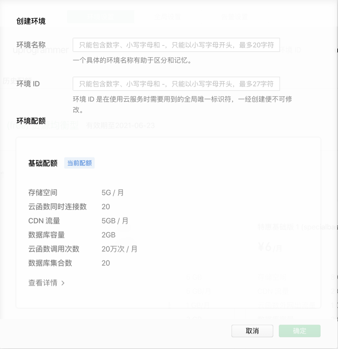 在微信开发者工具中打开自己的小程序工程,点击“云开发”菜单进去,如果之前没开通,需按照提示填写云开发环境名称。