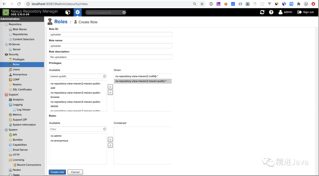 创建具有上传权限的角色
