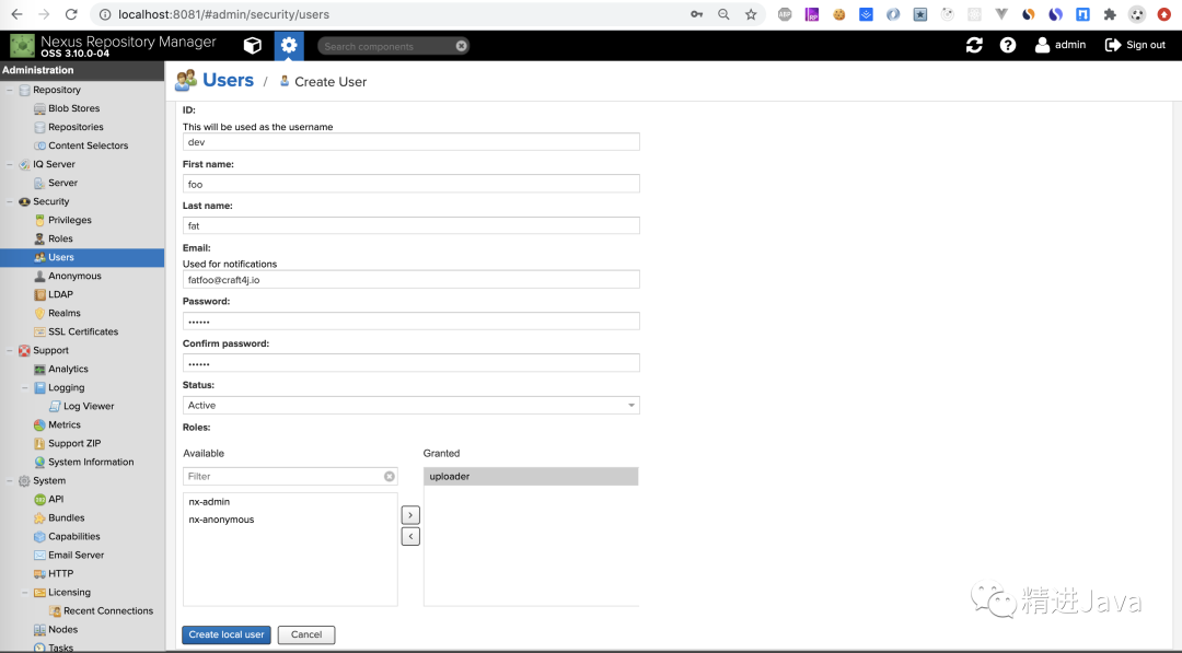 创建具有上传权限的角色的用户