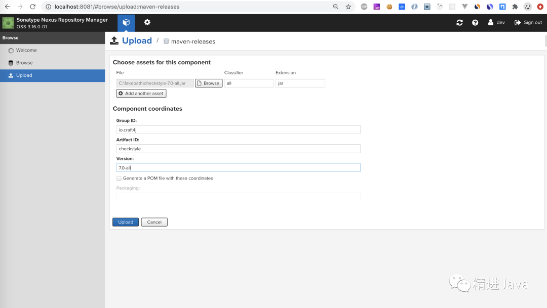 上传 jar 组件到 Nexus