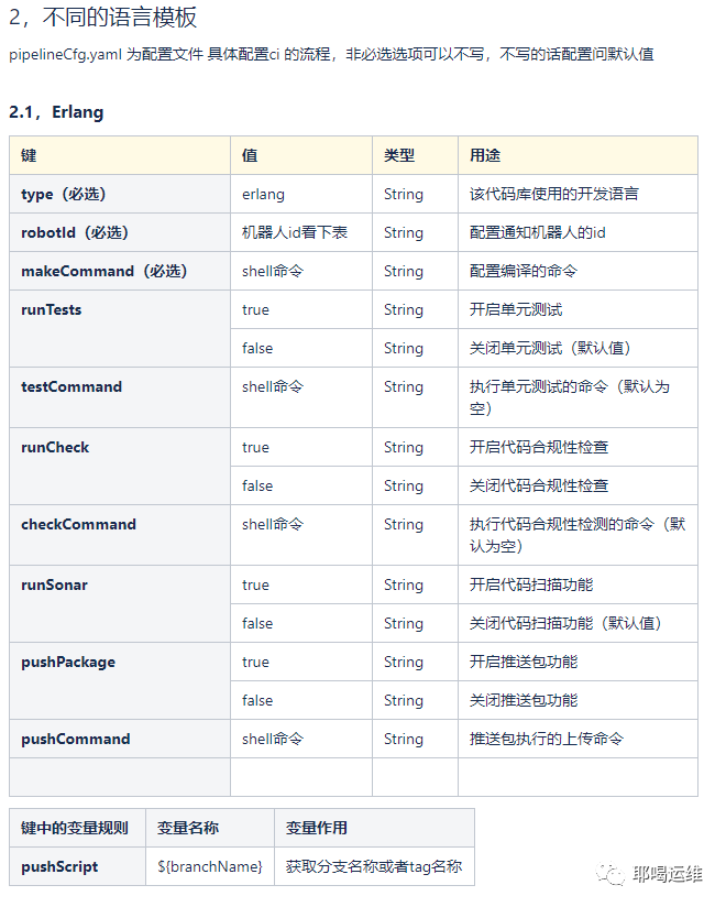 我在wiki软件中定义了一个ci/cd 的使用方法,研发通过观看文档去编写自己的pipelineCfg.yaml 文件,编写成功后在通过hubot机器人去创建Jenkins job(Hubot用法之前有写过在Chatops文章中),这样运维只要专注与模板库的逻辑代码编写就好了