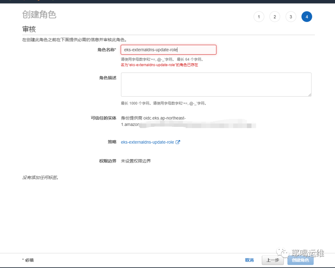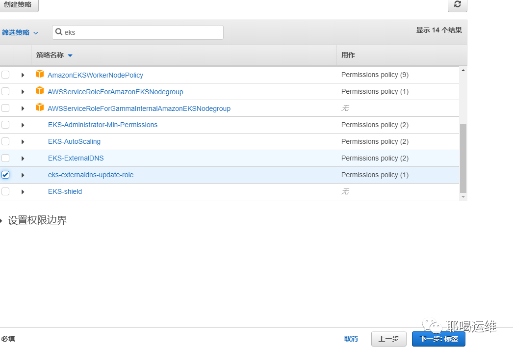 可以附加大的IAM(目前来说external-dns无法删除R53的name记录,所以给最小的就可以 )