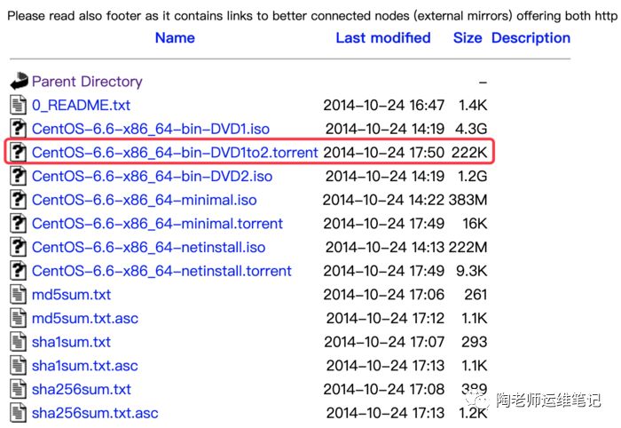 torrent种子文件: http://vault.centos.org/6.6/isos/x8664/CentOS-6.6-x8664-bin-DVD1to2.torrent