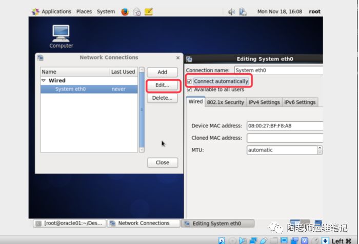 VirtualBox前面为虚机配置有两块网卡,并有不同的Mac地址,相应的在CentOS中咱们也要配置两块网卡。