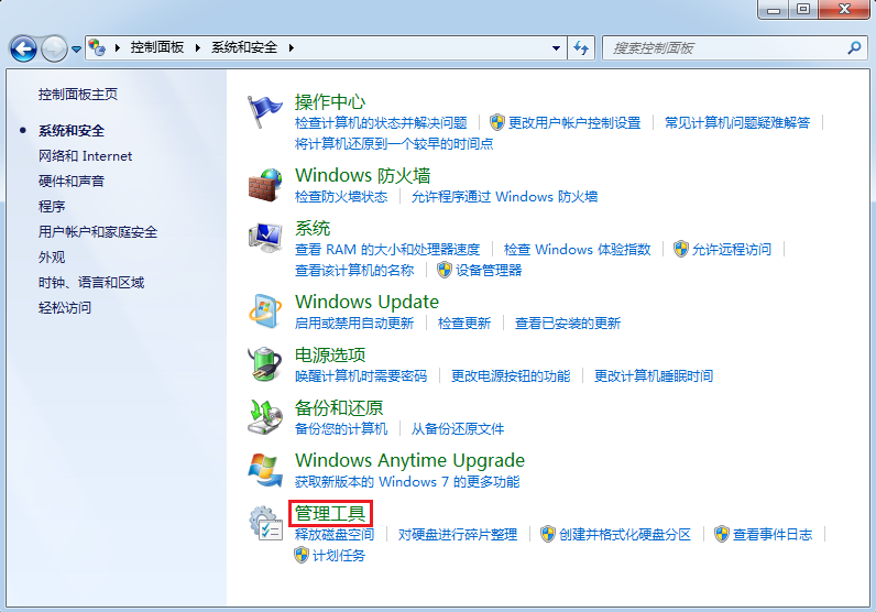 1.运行iSCSI发起程序。在Windows 7操作系统中已经默认安装了iSCSI客户端程序,我们只需在控制面板中找到“系统和安全”标签,然后单击“管理工具”,如图1-1所示