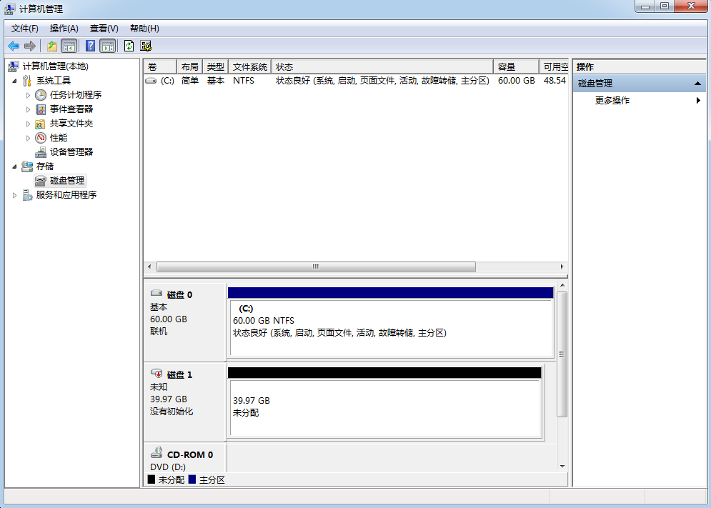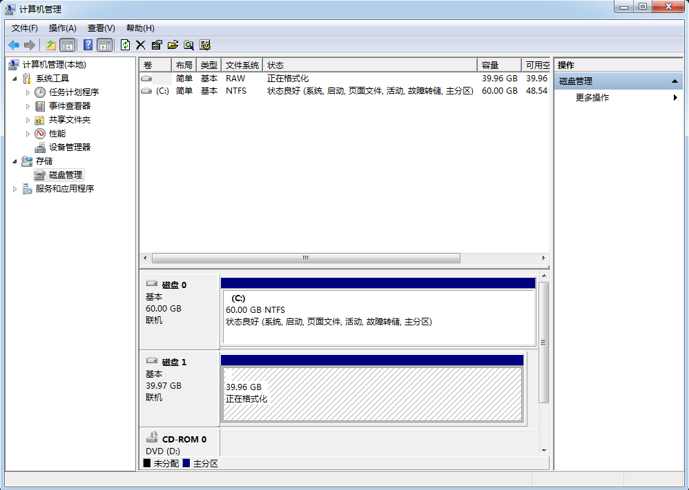 4.访问iSCSI远程共享存储资源。右键单击桌面上的“计算机”图标,打开计算机管理程序,如图1-8所示。