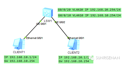 [LSW1-Vlanif20]ip add 192.168.20.254 24