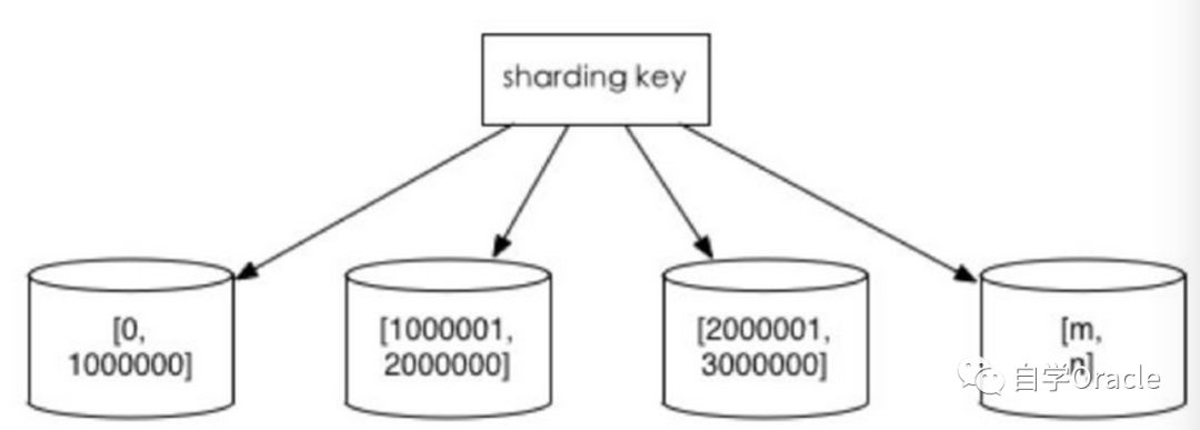 "根据数值范围":以主键uid为划分依据,按uid的范围将数据水平切分到多个数据库上。例如:user-db1存储uid范围为0~1000w的数据,user-db2存储uid范围为1000w~2000wuid数据。