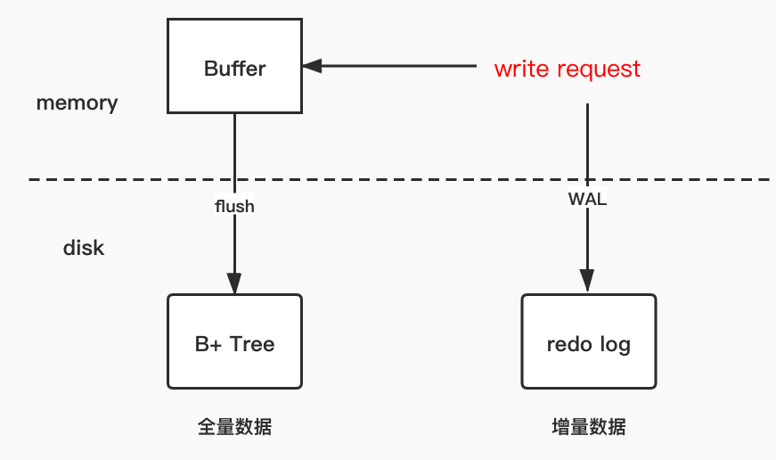 这么牛X的名单,你不想了解下LSM Tree吗?装X之前,我们先来了解一些基本概念。 设计数据存储系统可能需要考虑的一些问题有:ACID,RUM(Read,Write,Memory)。 ACID ACID 相信小伙伴都被面试官问过,我想简单讨论的一点是:如何 持久化数据 才能保证数据写入的 事务性 和 读写性能?事务性可简单理解为:1.数据必须持久化。2.一次数据的写入返回给用户 写入成功就一定成功,失败就一定失败。 读写性能可简单理解为:一次读 或 一次写 需要的IO次数,因为访问速率:CPU>>内存>>SSD/磁盘。 对于单机存储,最简单的方式当然是:写一条就持久化一条,读一条就遍历一遍所有数据,然后返回。当然没人这么干,在内存中我们都还知道用个HashMap呢。 读性能体现在数据的索引在磁盘上主要用B+树来保证。 写性能体现在运用 WAL机制 来避免每次写都去更新B+树上的全量索引和数据内容,而是通过redo log记录下来每次写的增量内容,顺序将redo log写入磁盘。同时在内存中记录下来本次写入应该在B+树上更新的脏页数据,然后在一定条件下触发脏页的刷盘。 redo log是数据增删改的实时增量数据,顺序写入保证了写性能和事务性。磁盘上的B+树是数据增删改的全量数据,通过定时脏页刷盘保证这份数据的完整性。 这里的问题是:虽然通过WAL机制,提高了写入性能,但是仍然避免不了脏页数据定时刷盘的随机IO写入。 因为数据在磁盘上是以block为单位存储的(比如4K,16K),假如你更新了Order表一条数据,又更新了Product表一条数据,脏页刷盘时,这两条数据在磁盘上的block位置可能差了十万八千里,就变成了随机IO的写入。 参考资料【3】 RUM RUM(Read,Write,Memory)类似分布式领域的CAP定理。如果想得到三者中的两者性能,必须以牺牲第三者的性能为代价。衡量这三者的性能指标有:读放大、写放大、空间放大。 读放大 :是指每次查询读取磁盘的次数。如果每次查询需要查询5个page (或block),则读放大是5.写放大 :是指数据写入存储设备的量和数据写入数据库的量之比。如果用户写入数据库的大小是10MB,而实际写入磁盘的大小是30MB,则写放大是3.另外SSD的写入次数是有限的,写放大会减少SSD的寿命。空间放大 :是指数据在存储设备的总量和数据在数据库的总量之比。如果用户往数据库上存10MB,而数据库实际在磁盘上用了100MB去存,则空间放大就是10.通常,数据结构可以最多优化这其中的两者,如B+树有更少的读放大,LSM Tree有更少的写放大。 下面我们将介绍LSM Tree的结构,它是如何解决 B+树中“全量数据的随机写入” 问题的;在RUM问题上,又该如何优化LSM Tree。 为什么要有LSM Tree LSM Tree(Log-structured merge-tree)起源于1996年的一篇论文: The log-structured merge-tree (LSM-tree) 。 当时的背景是:为一张数据增长很快的历史数据表设计一种存储结构,使得它能够解决:在内存不足,磁盘随机IO太慢下的严重写入性能问题。 如果我们先后修改两条数据,那么在脏数据块落盘时,不是一条条随机写入,而是以一个脏块批量落盘时,就能解决 B+树中“全量数据的随机写入” 问题了。