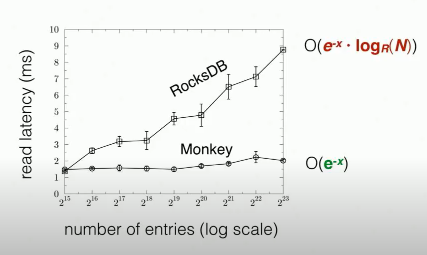 随着数据量的增大,整条曲线会上移。优化的重点在于:如何结合两种合并策略,使曲线整体下移。 参考资料【3】中Dostoevsky采用了一种Lazy Leveling的策略:它是对低层数据采用Tiering合并策略,对高层数据采用Leveling合并策略。从而权衡了读写性能。