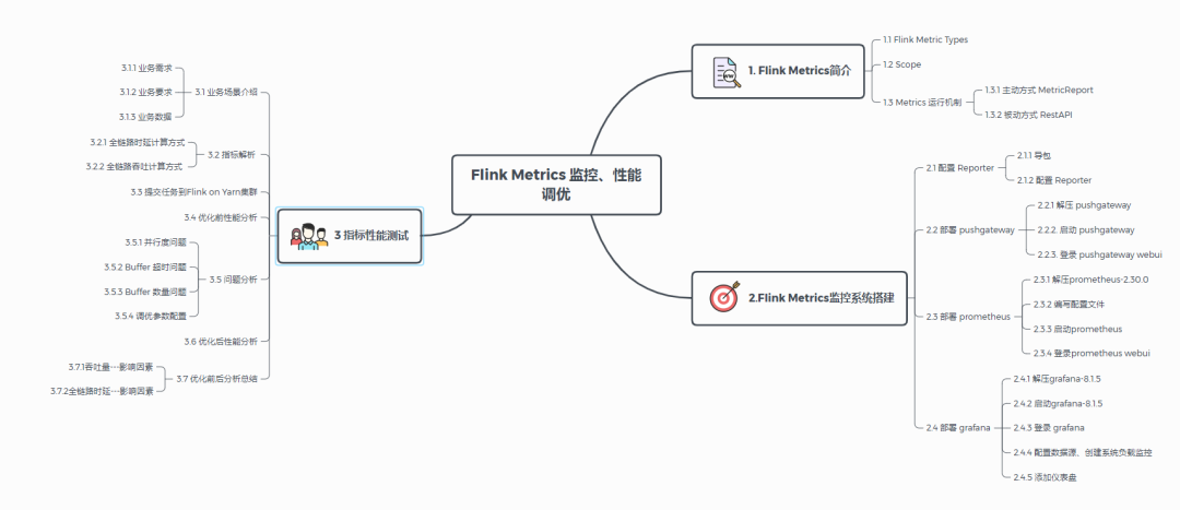 的指标进行性能优化,彻底掌握 Flink Metrics 性能调优的方法和 Metrics 的使用。大纲目录如下: