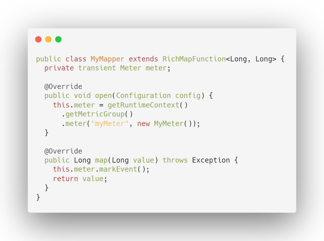 Flink 一共提供了四种监控指标:分别为 Counter、Gauge、Histogram、Meter。