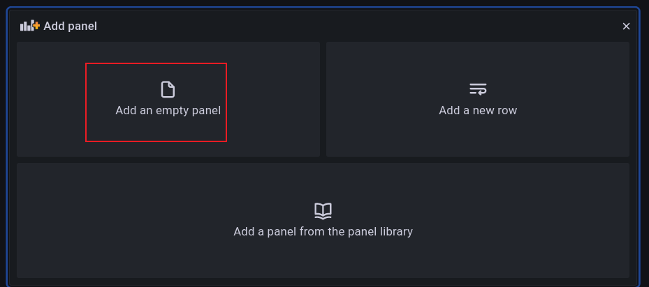 点击最左侧 + 号,选择 DashBoard,选择新建一个 pannel