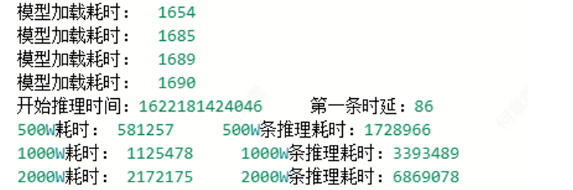 根据模型的复杂程度,要求推理时延到达 20ms 以内,全链路耗时 50ms 以内, 吞吐量达到每秒 1.2w 条以上。