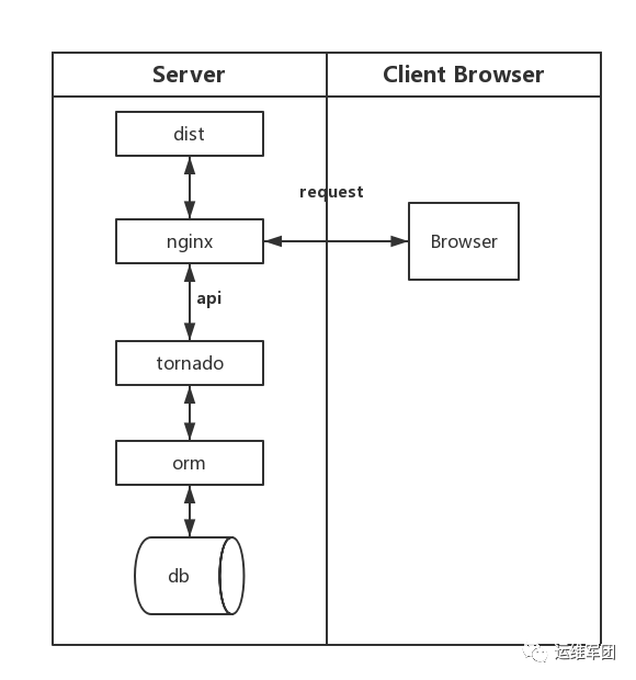 拿到了需求后,只会写python的小伟找到了一个合用的web框架tornado,大笔一挥画下了架构图。