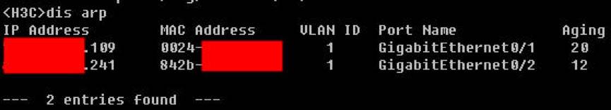 如果不知道这两台机器对应交换机哪个端口,可以先登录交换机,ping然后通过arp缓存查看。