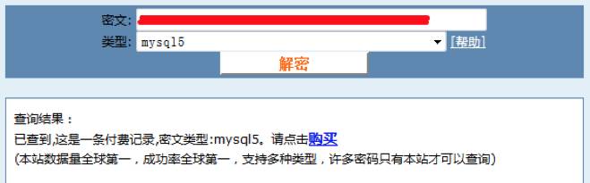 对于不复杂的MySQL密码,可以很容易通过cmd5等网站解密出明文: