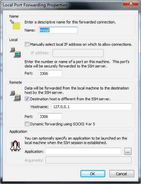 如使用SecureCRT的端口转发功能(Putty也类似),将本地3306端口转发到服务器的3306端口: