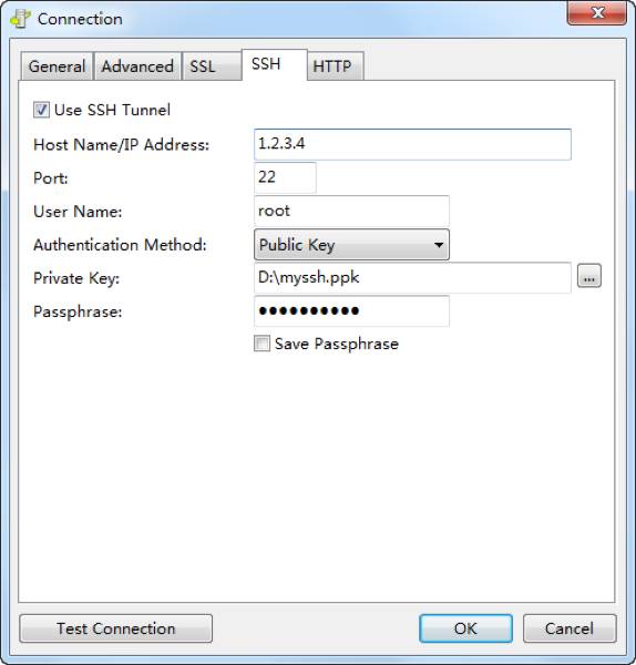 如果习惯使用navicat这类工具,可以使用自带的SSH隧道功能(注意旧版可能要将私钥转换成ppk格式):