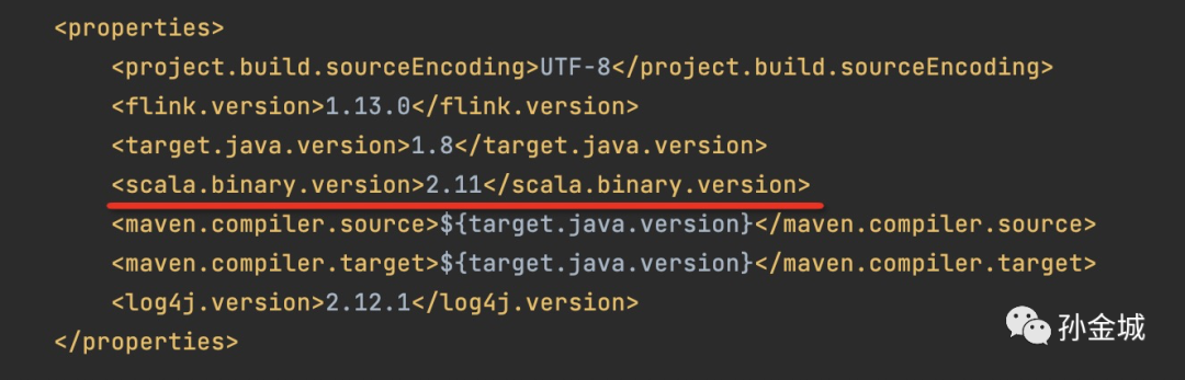 在properties里面也声明了scala的版本2.11,也及时在dependency依赖里面也使用了scala的版本信息,这一点是网友很困惑的点,我稍后解释。我们在看看Java开发DataStream最核心的依赖是什么?