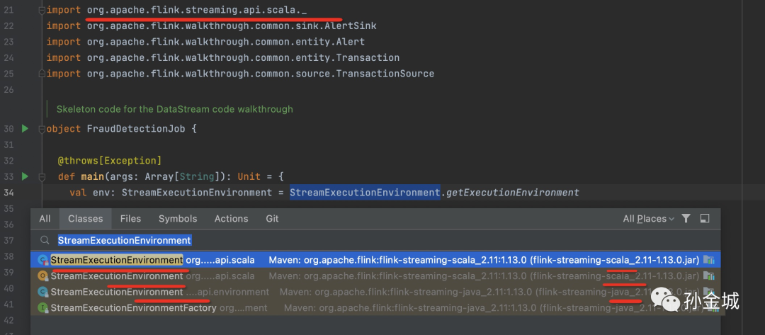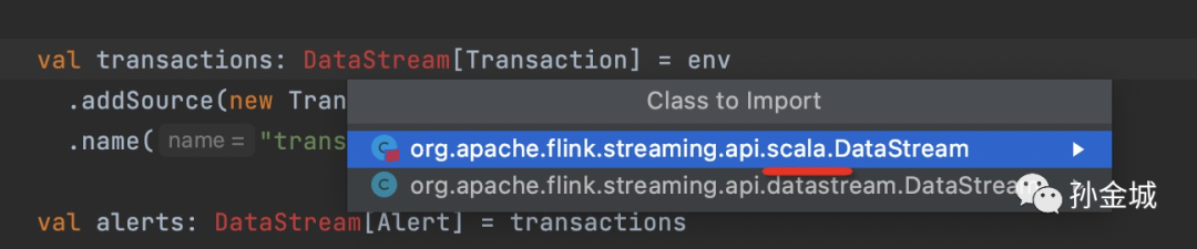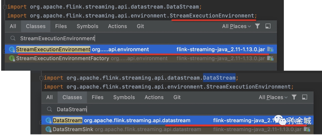 和业务相关的import是开发者自己非常清楚的,不必多说,和flink框架相关的引入只有DataStream & StreamExecutionEnvironment ,那么我们在自动import时候是否有import错误的可能呢?这个是Flink java开发者的省心的地方,如下:
