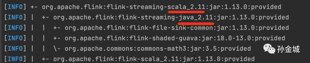 [INFO] org.apache.flink:flink-streaming-java_2.11:jar:1.14-SNAPSHOT[INFO] +- org.apache.flink:flink-core:jar:1.14-SNAPSHOT:compile[INFO] | +- org.apache.flink:flink-annotations:jar:1.14-SNAPSHOT:compile[INFO] | +- org.apache.flink:flink-metrics-core:jar:1.14-SNAPSHOT:compile[INFO] | +- org.apache.flink:flink-shaded-asm-7:jar:7.1-13.0:compile[INFO] | +- org.apache.commons:commons-lang3:jar:3.3.2:compile[INFO] | +- com.esotericsoftware.kryo:kryo:jar:2.24.0:compile[INFO] | | \- com.esotericsoftware.minlog:minlog:jar:1.2:compile[INFO] | +- commons-collections:commons-collections:jar:3.2.2:compile[INFO] | \- org.apache.commons:commons-compress:jar:1.20:compile[INFO] +- org.apache.flink:flink-file-sink-common:jar:1.14-SNAPSHOT:compile[INFO] +- org.apache.flink:flink-runtime_2.11:jar:1.14-SNAPSHOT:compile[INFO] | +- org.apache.flink:flink-queryable-state-client-java:jar:1.14-SNAPSHOT:compile[INFO] | +- org.apache.flink:flink-hadoop-fs:jar:1.14-SNAPSHOT:compile[INFO] | +- commons-io:commons-io:jar:2.8.0:compile[INFO] | +- org.apache.flink:flink-shaded-netty:jar:4.1.49.Final-13.0:compile[INFO] | +- org.apache.flink:flink-shaded-jackson:jar:2.12.1-13.0:compile[INFO] | +- org.apache.flink:flink-shaded-zookeeper-3:jar:3.4.14-13.0:compile[INFO] | +- commons-cli:commons-cli:jar:1.3.1:compile[INFO] | +- org.javassist:javassist:jar:3.24.0-GA:compile[INFO] | +- org.scala-lang:scala-library:jar:2.11.12:compile[INFO] | +- com.typesafe.akka:akka-actor_2.11:jar:2.5.21:compile[INFO] | | +- com.typesafe:config:jar:1.3.0:compile[INFO] | | \- org.scala-lang.modules:scala-java8-compat_2.11:jar:0.7.0:compile[INFO] | +- com.typesafe.akka:akka-stream_2.11:jar:2.5.21:compile[INFO] | | +- org.reactivestreams:reactive-streams:jar:1.0.2:compile[INFO] | | \- com.typesafe:ssl-config-core_2.11:jar:0.3.7:compile[INFO] | | \- org.scala-lang.modules:scala-parser-combinators_2.11:jar:1.1.1:compile[INFO] | +- com.typesafe.akka:akka-protobuf_2.11:jar:2.5.21:compile[INFO] | +- com.typesafe.akka:akka-slf4j_2.11:jar:2.5.21:compile[INFO] | +- org.clapper:grizzled-slf4j_2.11:jar:1.3.2:compile[INFO] | +- com.github.scopt:scopt_2.11:jar:3.5.0:compile[INFO] | +- org.xerial.snappy:snappy-java:jar:1.1.8.3:compile[INFO] | \- org.lz4:lz4-java:jar:1.6.0:compile[INFO] +- org.apache.flink:flink-java:jar:1.14-SNAPSHOT:compile[INFO] +- org.apache.flink:flink-shaded-guava:jar:18.0-13.0:compile[INFO] +- org.apache.commons:commons-math3:jar:3.5:compile[INFO] +- org.apache.flink:flink-core:test-jar:tests:1.14-SNAPSHOT:test[INFO] +- org.apache.flink:flink-test-utils-junit:jar:1.14-SNAPSHOT:test[INFO] +- org.apache.flink:flink-runtime_2.11:test-jar:tests:1.14-SNAPSHOT:test[INFO] +- org.apache.flink:flink-shaded-force-shading:jar:13.0:compile[INFO] +- org.slf4j:slf4j-api:jar:1.7.15:compile[INFO] +- com.google.code.findbugs:jsr305:jar:1.3.9:compile[INFO] +- junit:junit:jar:4.13.2:test[INFO] | \- org.hamcrest:hamcrest-core:jar:1.3:test[INFO] +- org.mockito:mockito-core:jar:2.21.0:test[INFO] | +- net.bytebuddy:byte-buddy:jar:1.8.15:test[INFO] | +- net.bytebuddy:byte-buddy-agent:jar:1.8.15:test[INFO] | \- org.objenesis:objenesis:jar:2.1:compile[INFO] +- org.powermock:powermock-module-junit4:jar:2.0.4:test[INFO] | \- org.powermock:powermock-module-junit4-common:jar:2.0.4:test[INFO] | +- org.powermock:powermock-reflect:jar:2.0.4:test[INFO] | \- org.powermock:powermock-core:jar:2.0.4:test[INFO] +- org.powermock:powermock-api-mockito2:jar:2.0.4:test[INFO] | \- org.powermock:powermock-api-support:jar:2.0.4:test[INFO] +- org.hamcrest:hamcrest-all:jar:1.3:test[INFO] +- org.apache.logging.log4j:log4j-slf4j-impl:jar:2.14.1:test[INFO] +- org.apache.logging.log4j:log4j-api:jar:2.14.1:test[INFO] +- org.apache.logging.log4j:log4j-core:jar:2.14.1:test[INFO] \- org.apache.logging.log4j:log4j-1.2-api:jar:2.14.1:test[INFO] ------------------------------------------------------------------------[INFO] BUILD SUCCESS[INFO] ------------------------------------------------------------------------[INFO] Total time: 42.595 s[INFO] Finished at: 2021-06-26T08:57:22+08:00[INFO] ------------------------------------------------------------------------
