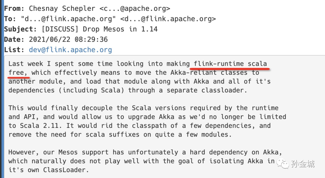 用户的眼光都是雪亮的,问题都是一针见血的,这问题也的的确确是Flink社区需要解决的,也发起了去掉Scala依赖的讨论。