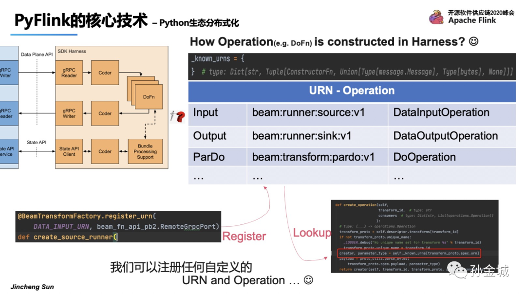 在启动阶段,Python SDK Harness将为所有内置操作建立URN和操作映射。