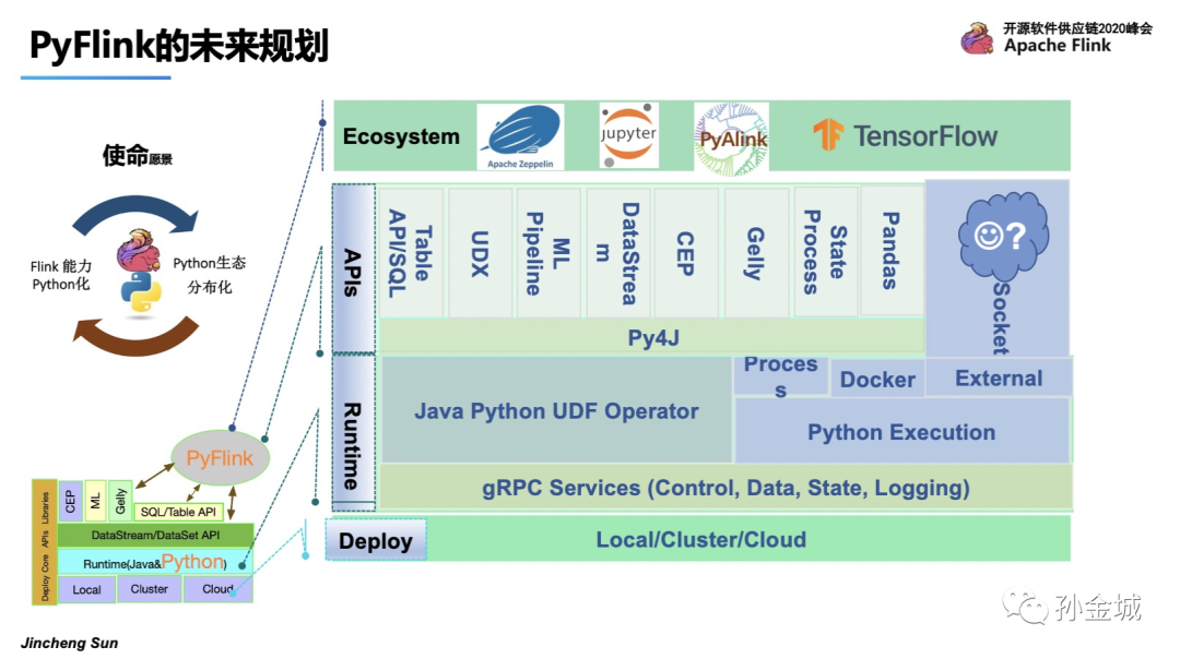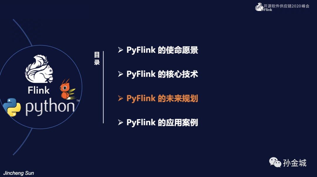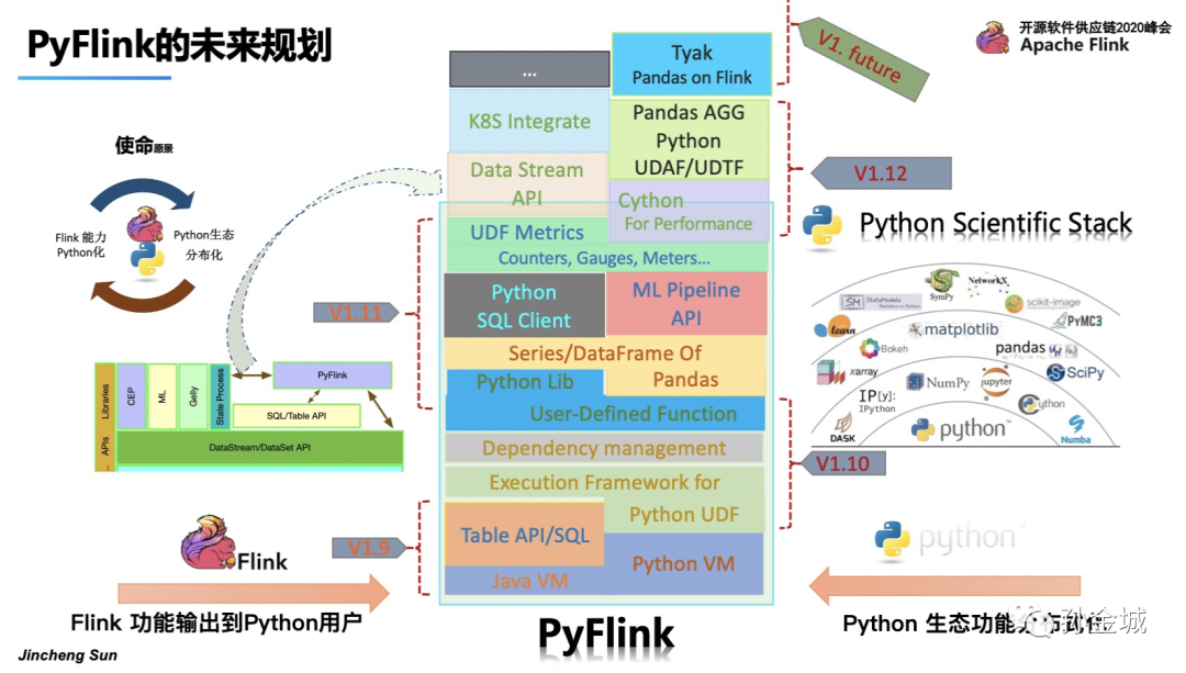 后续还会不断将Flink现有功能推向Python生态,将Python 生态的强大功能不断集成到Flink当中,进而完成Python生态分布化的初衷。