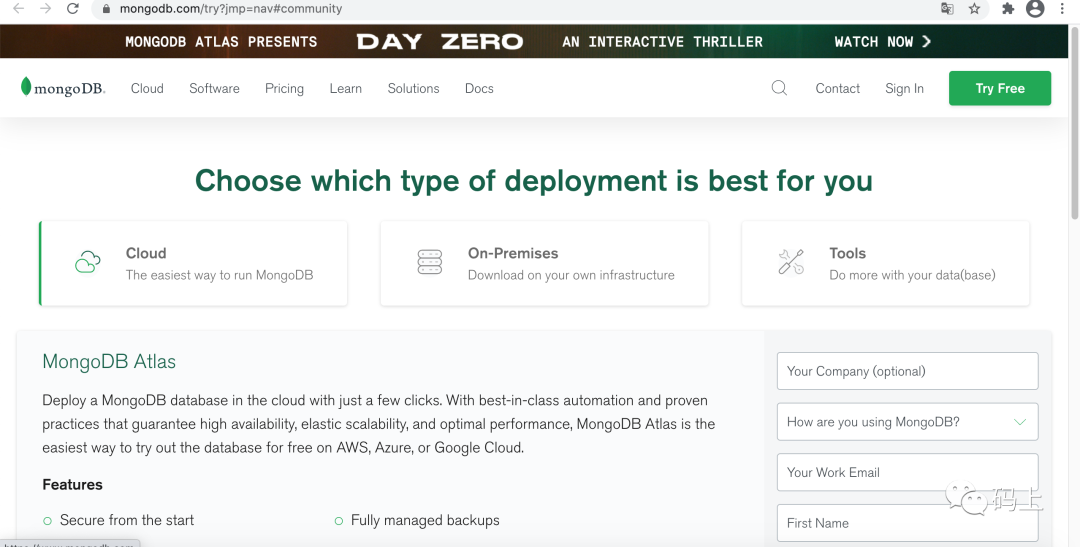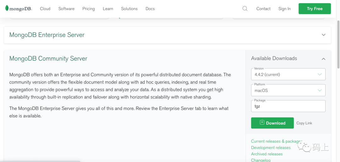 1、访问 MongoDB 官方,并下载最新版本,下载地址为: