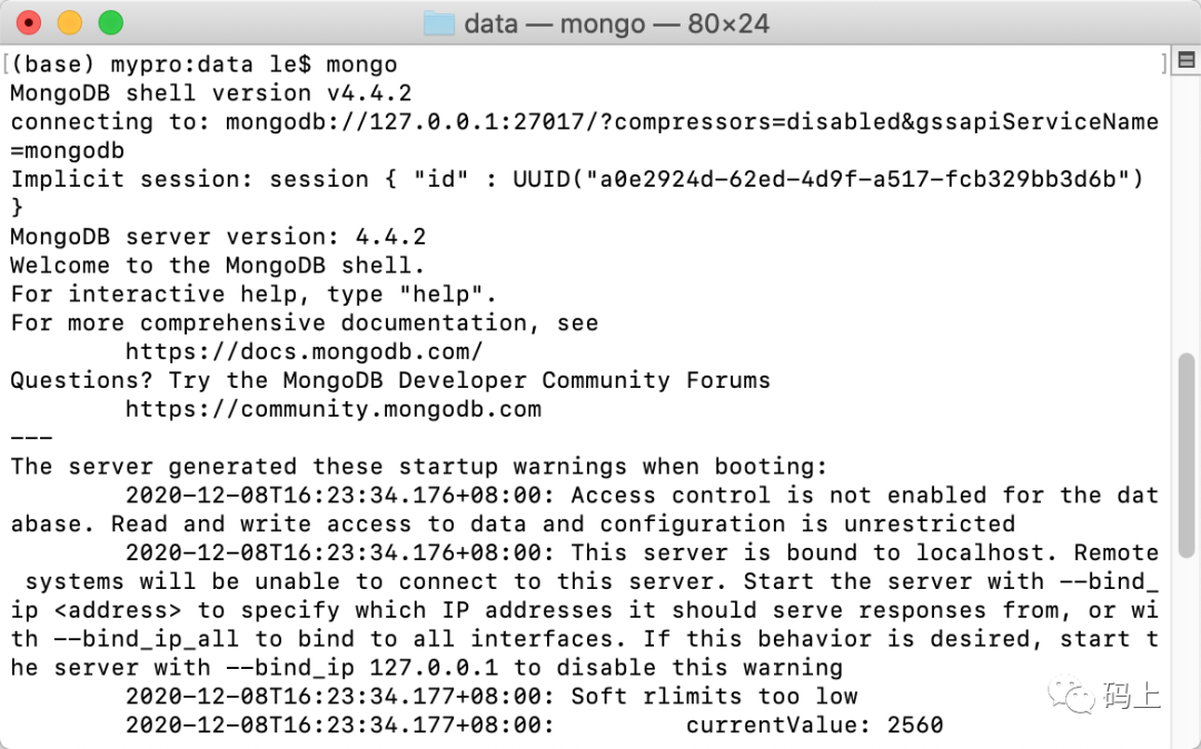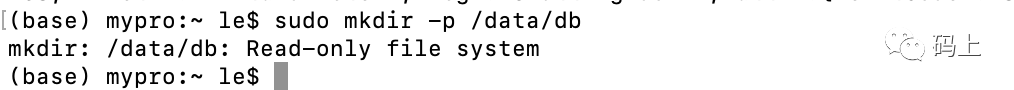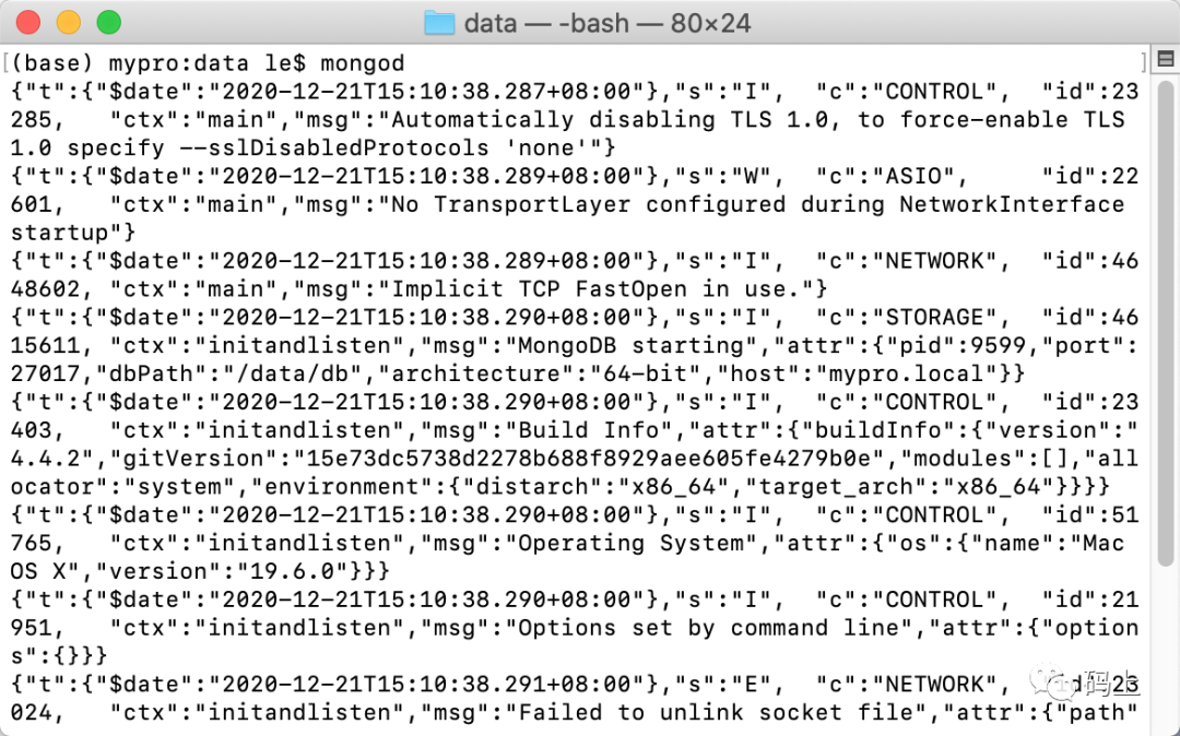 我们用 ~/data 文件夹作为数据库目录,代替 data/db 文件夹