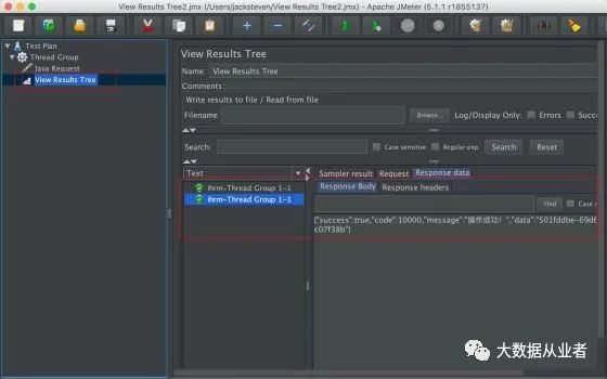 获取到返回数据后,Jmeter可以把返回数据写入到结果树中,这样就能使用查看结果树来观察返回的数据了。