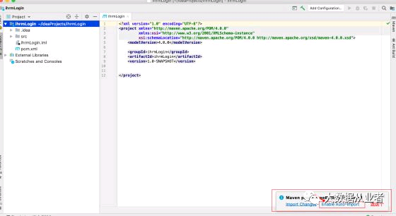 新建好后就是这样:然后右下角会弹出一个maven的提示,选择开启自动导入