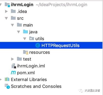 在utils下新建一个java文件,名称为HTTPRequestUtils,详细步骤就不贴图了,就是对utils点击右键,选择new->java class