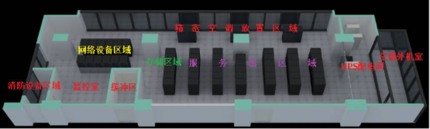 精密空调区:用于摆放三台精密空调,为机房制冷;