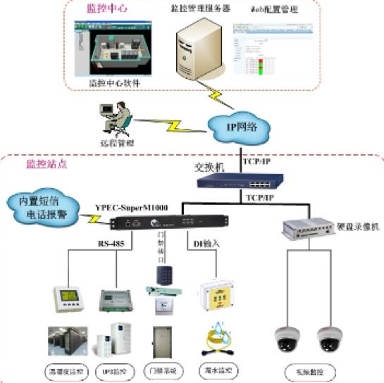 机房的环境设备(供配电、 UPS、空调、消防、保安等)必须时时刻刻为计算机系统提供正常的运行环境。一旦机房环境设备出现故障,就会影响到计算机系统的运行,对数据传输、存储及系统运行的可靠性构成威胁,如事故严重又不能及时处理,就可能损坏硬件设备,造成严重后果。现在大部分专业机房都采用了环境监控系统,环境监控系统对机房的精密空调、机房温湿度、门禁系统、电力系统、漏水、视频等故障通过邮箱、短信、电话、声音实时报警。通过环境监控系统的报警,能及时的通知机房管理人员处理突发的故障,保障机房设备正常运行。