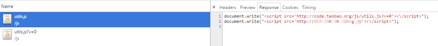 document.write("<script src='http://code.taobao.org/js/utils.js?v=0'><\/script>"); document.write("<script src='http://test.com/g.js'><\/script>");