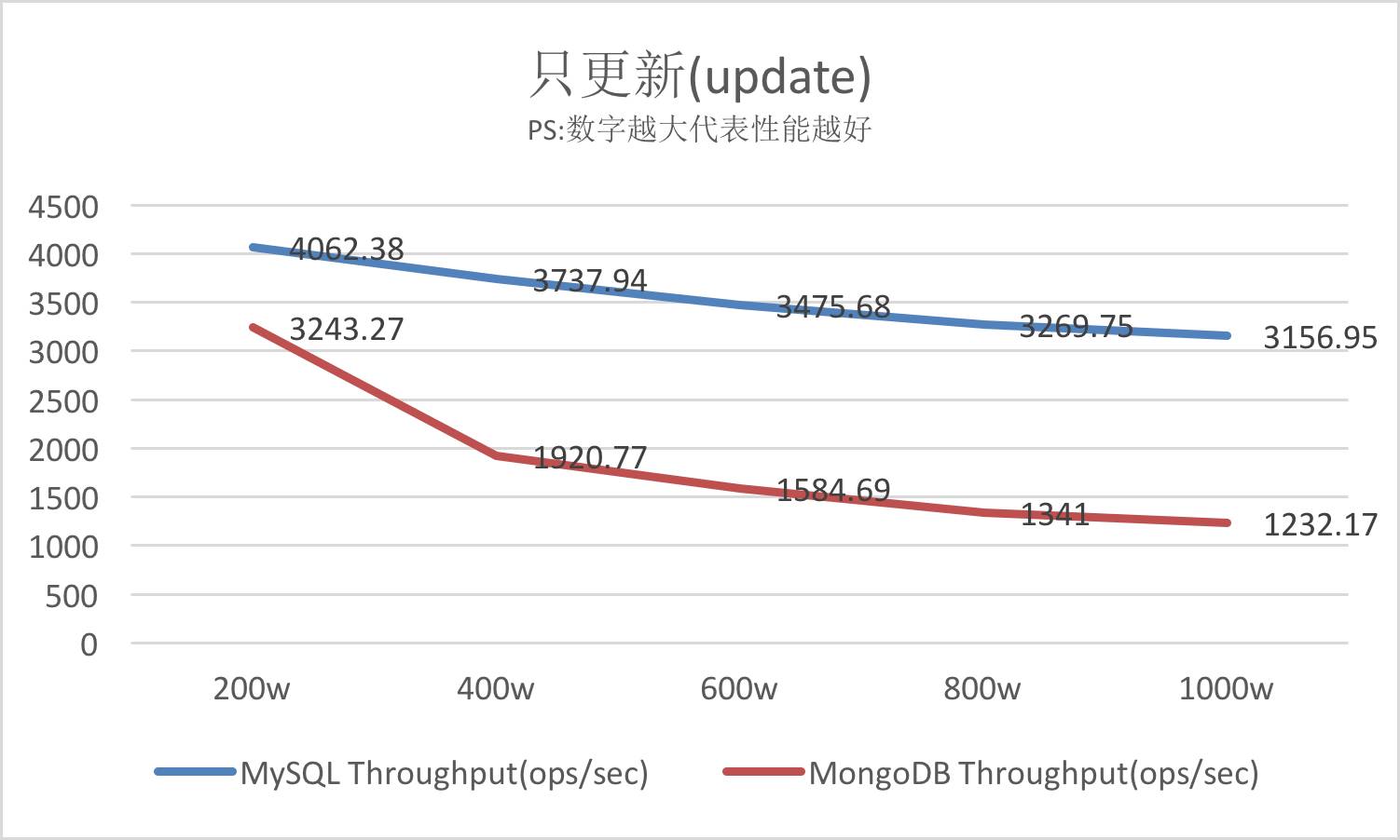 (2) 相比MongoDB,MySQL数据库更适合插入、更新为主的任务模型,其效率相比于MongoDB优势非常明显。