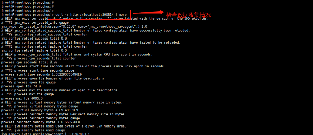 5、 测试是否收集到数据 curl -s http://localhost:39081/ | more