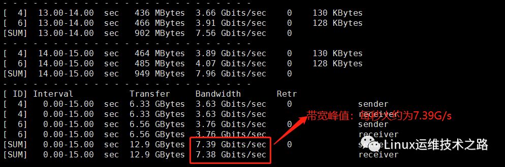 客户端执行:iperf3 -c 192.168.10.163 -t 30 -P 2 -p 10000 (参数-P 是并行运行的意思)