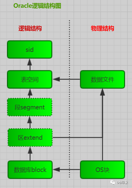 首先,是Oracle DBA比较熟悉的逻辑结构图: